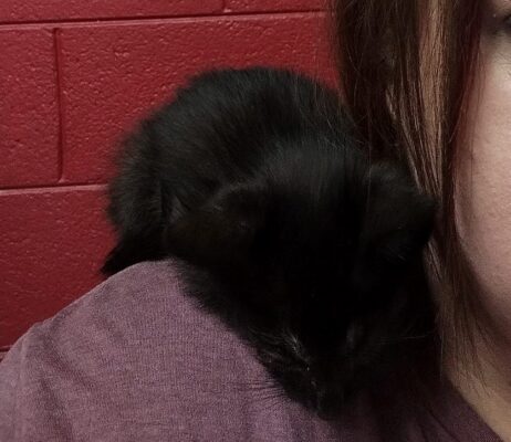 The fuzzy black kitten was just a few weeks old and had been found by Kristi and Perry all alone with no mama to tend to him. Though the storm clouds lingered, and the sky opened up to dump buckets of water over Columbus County, God had sent a cat to bring sunshine through the doom and gloom.