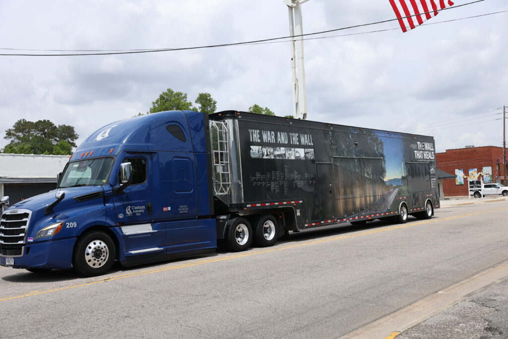 The wall is a 3/3 scale replica of the Vietnam Memorial in Washington, D.C. It features all 58,000 names of Americans killed in the Vietnam War. The mobile education center also features photos of each American killed there, and memorabilia placed at the Wall in Washington.
