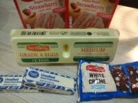 You will need two boxes of cake mix, two sticks of butter, four eggs, and two cups of mix-ins. This is enough for 48 cookies, but if you don’t need that many, you can cut the ingredients in half and just make 24.
