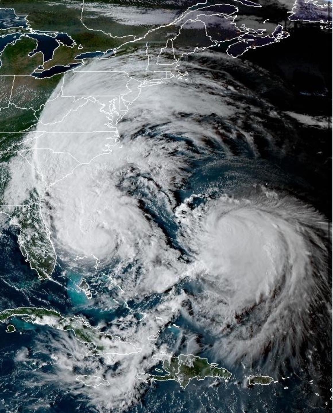 I have never seen a satellite image quite like this… two storms side-by-side, as seen late Monday afternoon. I think it can be more appreciated knowing that neither will have any direct impacts here. After weeks and weeks of quiet tropics, now we have this. Pretty fantastic stuff.