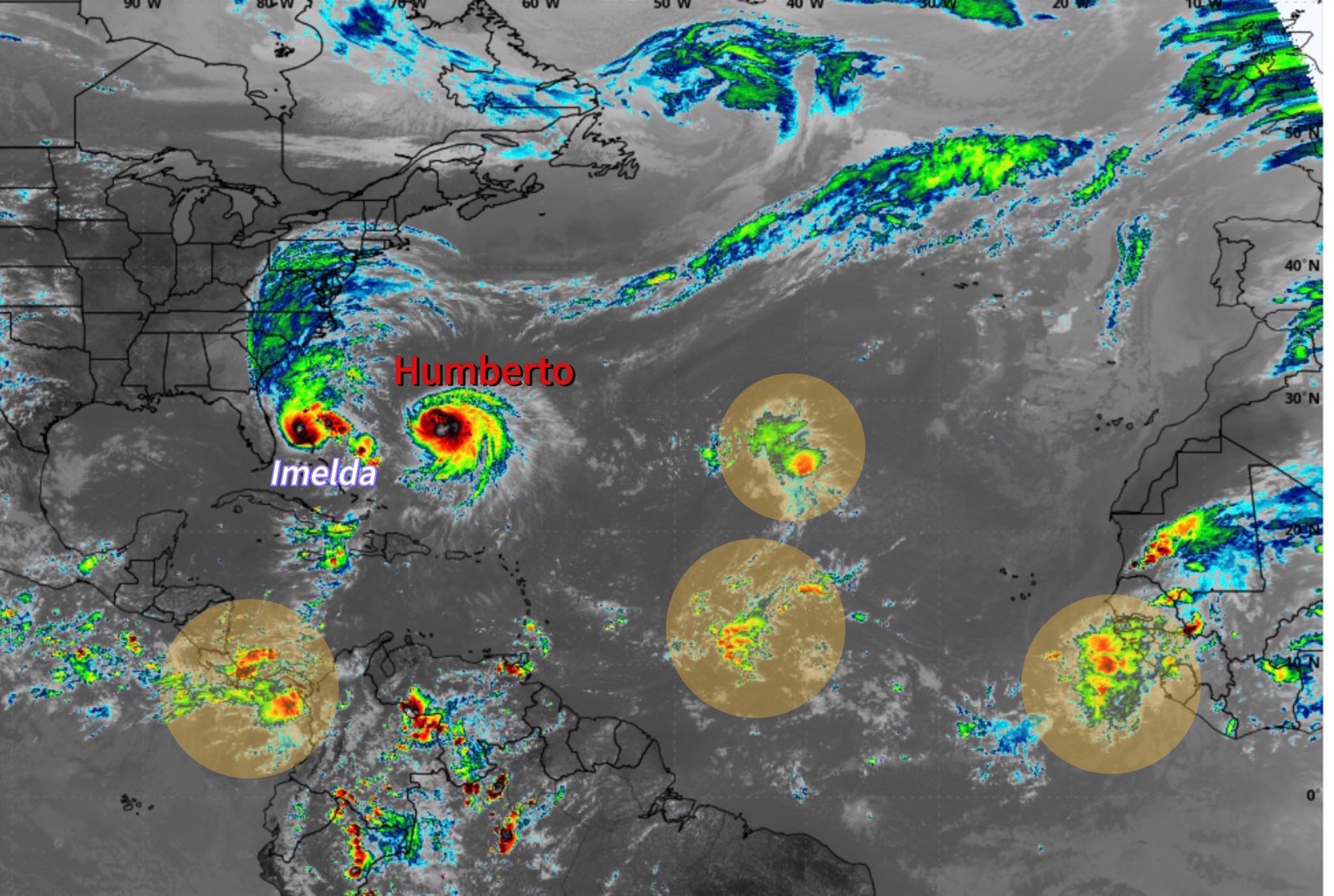 TROPICS: Both Humberto and Imelda will move away and have no direct impacts on the Carolinas, outside of rough surf and deadly rip currents the next several days.