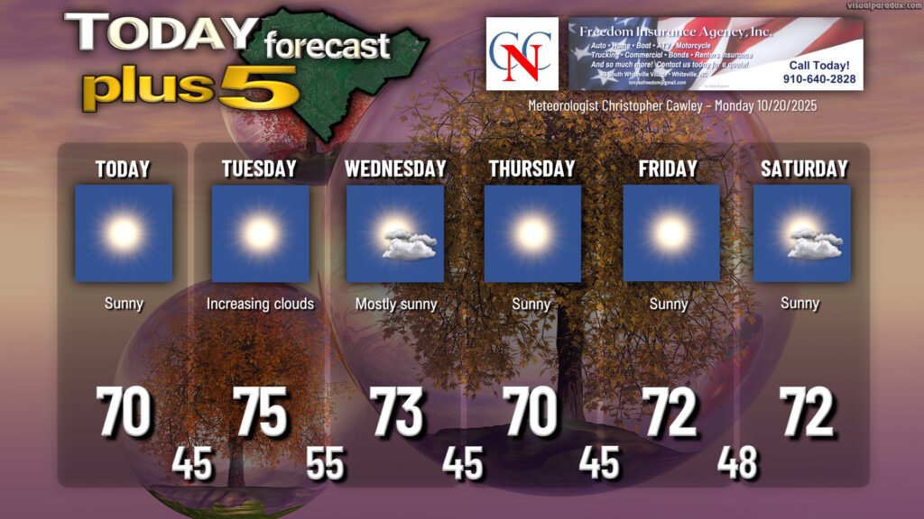 CCN Radio News — Morning Report for October 20, 2025 October 20, 2025 Jeff Allen Jones Front Page, Lead Story, News, RADIO NEWS 0 CCN Radio News – Morning Report for October 20, 2025 (Press Play for the Audio) 🔊 https://columbuscountynews.com/wp-content/uploads/2025/10/CCN-MORNING-NEWS-13.mp3 THE LATEST NEWS HEADLINES FROM COLUMBUS COUNTY NEWS Front Page CCN Radio News — Morning Report for October 20, 2025 CCN Weather Update Weather Update – Monday October 20, 2025 Front Page Red Springs Dominates West Bladen 35-0 Front Page Whiteville Survives Fairmont 42-28 Business Local Assistance Clients May See Delays Front Page Hobbton Holds Back West Columbus 42-28 Front Page Church Hayride has Scary Surprise Front Page South Brunswick Escapes South Columbus 28-27 Front Page Red Springs Dominates West Bladen 35-0 Front Page East Bladen Crushes Lakewood 32-0 Front Page CCN Daily News Briefs for October 19, 2025 Obituaries Dixie Lee (Nobles) McKee Obituaries Johnny Sasser CCN Weather Update Weather Update – Saturday and Sunday Oct 18-19 Front Page The Good News – Weekend Audio 🔊 Report for October 18, 2025 Front Page CCN Daily News Briefs for October 17, 2025 Front Page CCN Radio News — Afternoon Report for October 17, 2025 Front Page City Manager Details Flooding Challenges, Solutions Front Page Gators Win Conference; Volleyball Playoff Pairings Announced Front Page Jefferson Weaver • Wolves, Sheep and Sheepdogs CCN Weather Update Weather Update – Friday October 17, 2025 Front Page CCN Radio News — Morning Report for October 17, 2025 Entertainment The Office: A Masterpiece of Mockumentary Gold (2005-2013) Front Page CCN Daily News Briefs for October 16, 2025 Front Page CCN Radio News — Afternoon Report for October 16, 2025 Front Page World Singing Day Set for Lake Saturday Front Page Whiteville Woman Charged with Attempted Murder Front Page CCSO Details Drug Operations COLUMBUS CONNECTION Weekly Podcast: The Columbus Connection – Whiteville City Manager Darren Currie Front Page Fore! Local Golf Roundup for Oct. 14