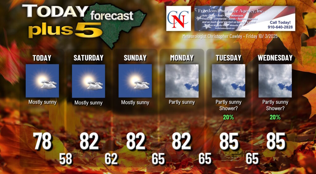 CCN Radio News — Morning Report for October 3, 2025 October 3, 2025 Jeff Allen Jones Front Page, Lead Story, News, RADIO NEWS 0 CCN Radio News – Morning Report for October 3, 2025 (Press Play for the Audio) 🔊 https://columbuscountynews.com/wp-content/uploads/2025/10/CCN-MORNING-NEWS-2.mp3 THE LATEST NEWS HEADLINES FROM COLUMBUS COUNTY NEWS Front Page CCN Radio News — Morning Report for October 3, 2025 CCN Weather Update Weather Update – Friday October 3, 2025 Front Page CCN Daily News Briefs for October 2, 2025 Business CCN Business Spotlight – Wild Horse Preserve at Grayce Wynds Front Page CCN Radio News — Afternoon Report for October 2, 2025 Front Page Two Teachers Hurt After Student Fight at SCHS Front Page Man Charged After Firing Shot During Domestic Front Page Bladen Woman Charged with Child Abuse Entertainment Weeds: A Suburban Symphony of Sin (2005) Obituaries Nathan McKinnies Obituaries Remmi Jayms Noble Front Page CCN Radio News — Morning Report for October 2, 2025 CCN Weather Update Weather Update – Thursday October 2, 2025 Front Page CCN Daily News Briefs for October 1, 2025 Front Page CCN Radio News — Afternoon Report for October 1, 2025 Front Page DWI Roundup for Sept. 25-Oct. 1 Front Page Chadbourn Girl Dies After ATV Crash Front Page The Good News October 1-7, 2025 Front Page CCN Radio News — Morning Report for October 1, 2025 CCN Weather Update Weather Update – Wednesday October 1, 2025 Obituaries Jerry Dale Sarvis Obituaries Dewey Ray Norris MILITARY / VETERANS Leonard Henry McCraith Obituaries Emily Merle Norris Worley Obituaries Shirley Ruth Canady Obituaries Gregory K Prevatte Jr. Front Page CCN Daily News Briefs for September 30, 2025 Front Page Three Jailed After Evergreen Raids Front Page CCN Trick or Treat Guide 2025 Front Page Man Charged After Waving Gun in Insurance Office