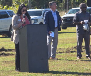 Madison Ward speaks to the crowd Tuesday at the groundbreaking for the new park. (Glasgow Hicks photo)