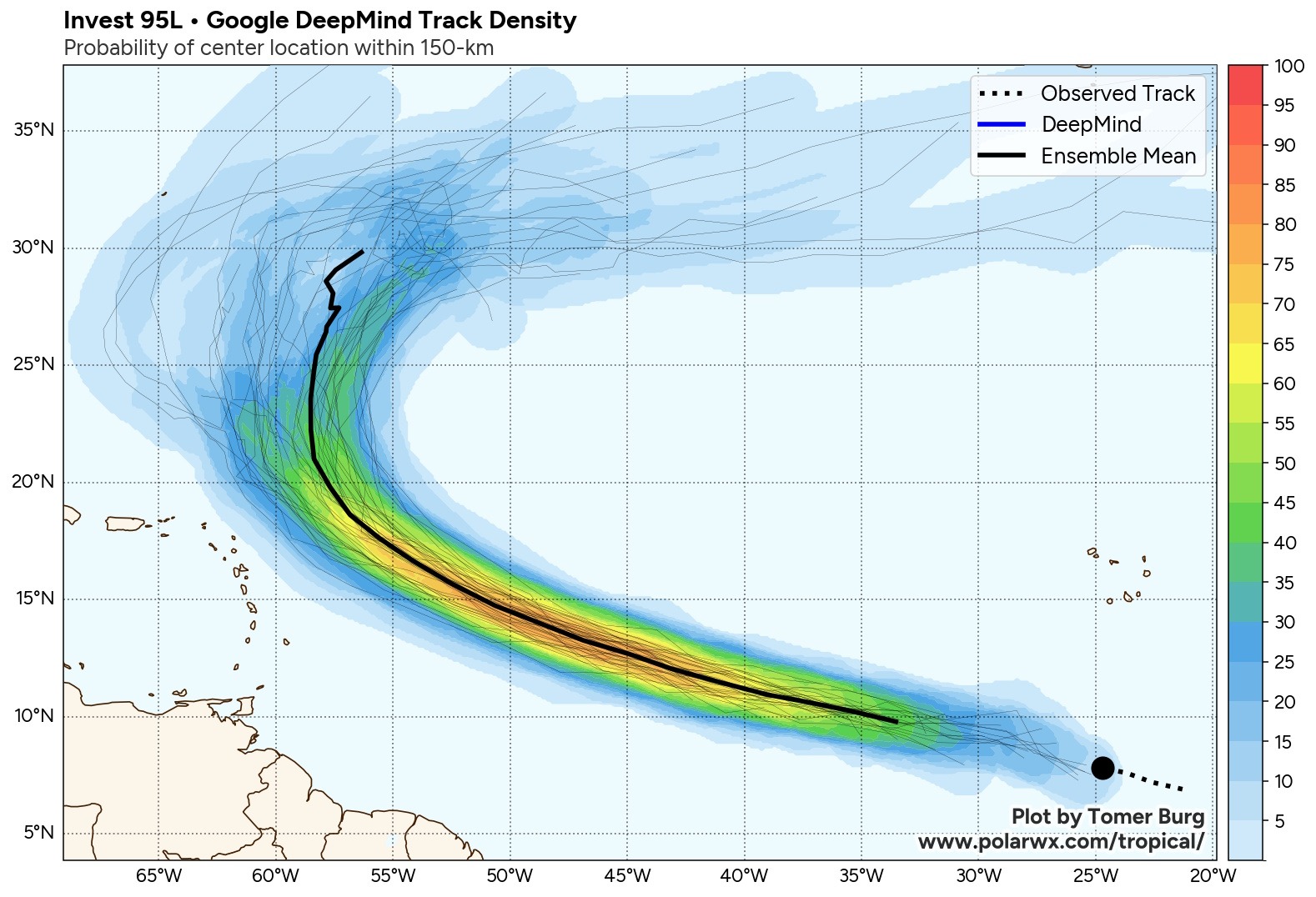 TROPICS: So we’re carefully monitoring the central tropical Atlantic for what will likely become the “J” storm — Jerry. The Google DeepMind modeling (and quite literally ALL of the other global models) show this progressing northwestward and then taking the familiar curve northward, resulting in no risk for the continental United States. For what it’s worth the Google DeepMind AI modeling has been – by far – the best performer this season.