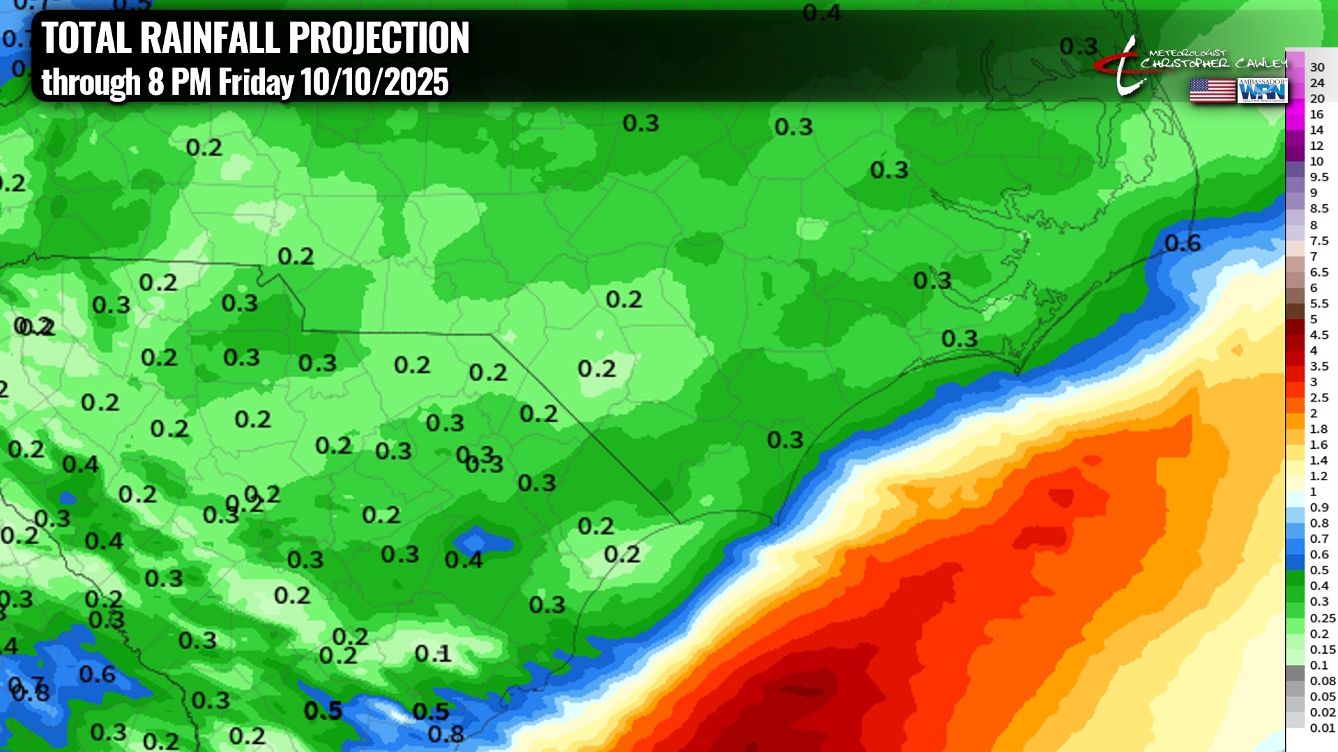 The central portion of Columbus County is in a D1 drought, so we need some rain, but unfortunately, we’re not going to get much (if any).