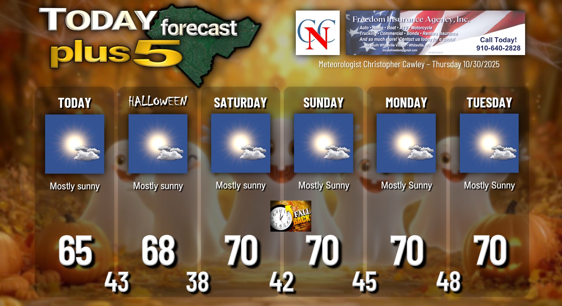This weather update is sponsored by Freedom Insurance of Whiteville. No weather worries with Freedom Insurance. For home, car, boat, or whatever you need, Freedom can provide customized coverage to keep you and your family safe. Contact Freedom today at 910-640-2828!