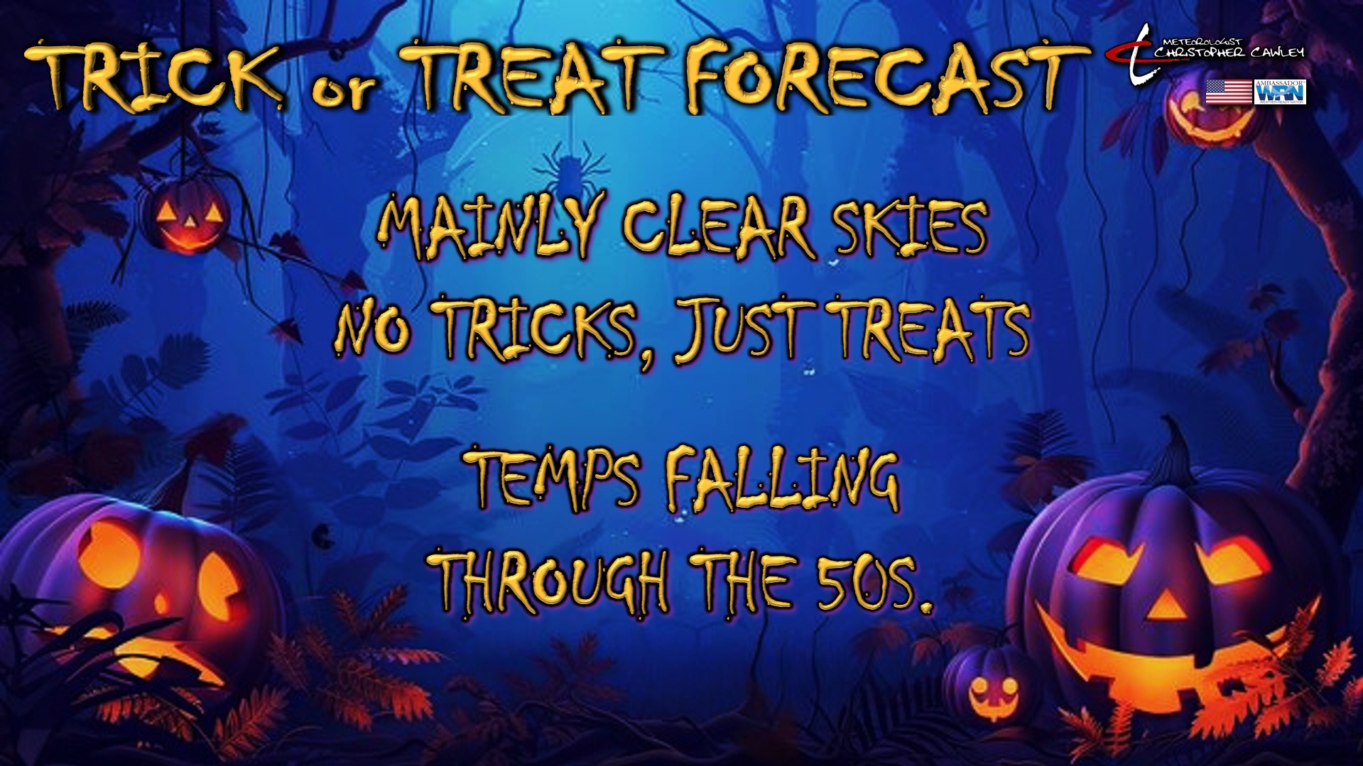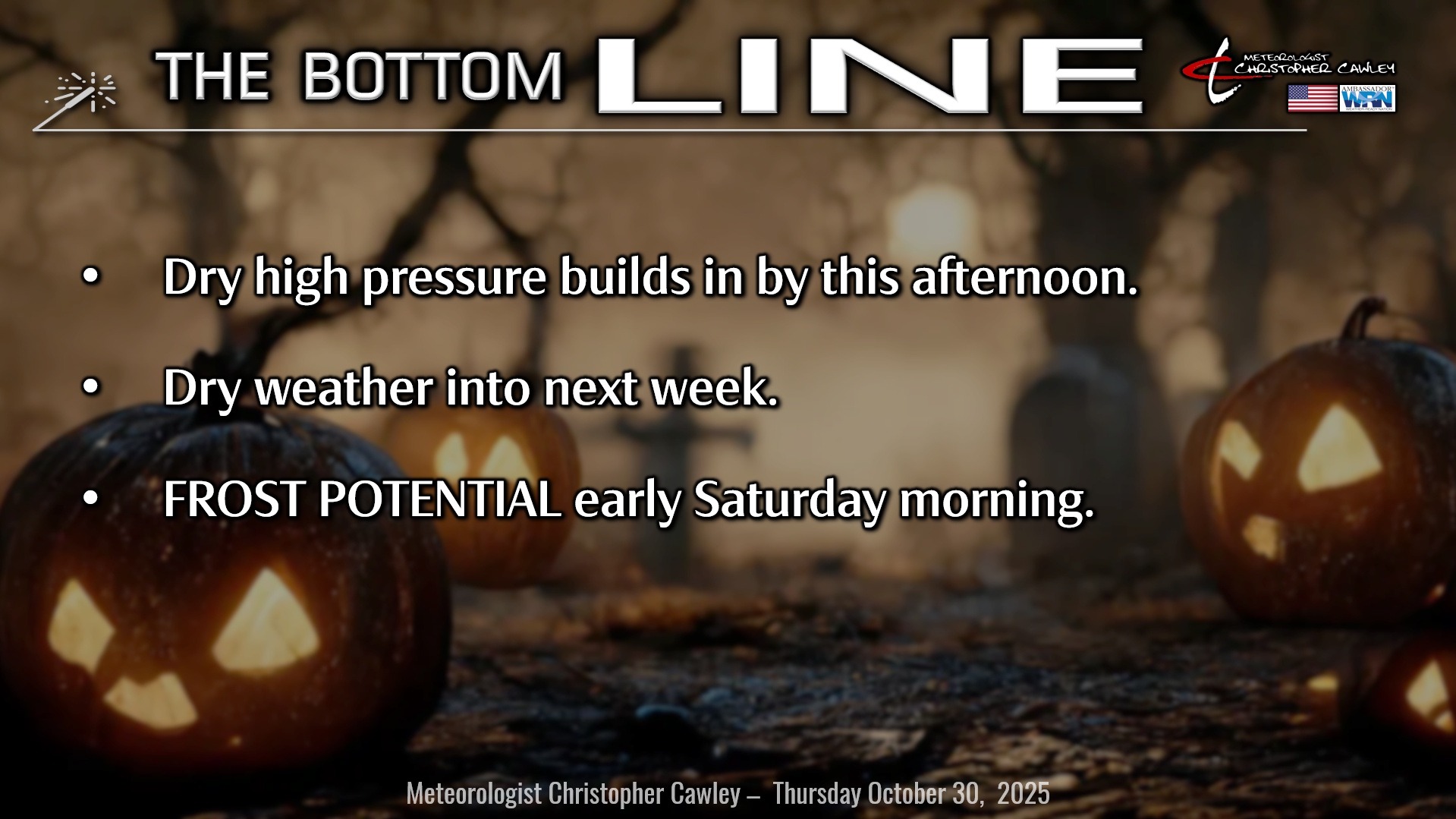 High pressure builds in for real on Friday with blue sunny skies. As the high builds overhead Friday night, temperatures drop, drop, drop during trick-or-treat time … and ultimately settle in the upper 30s across the area early Saturday morning.