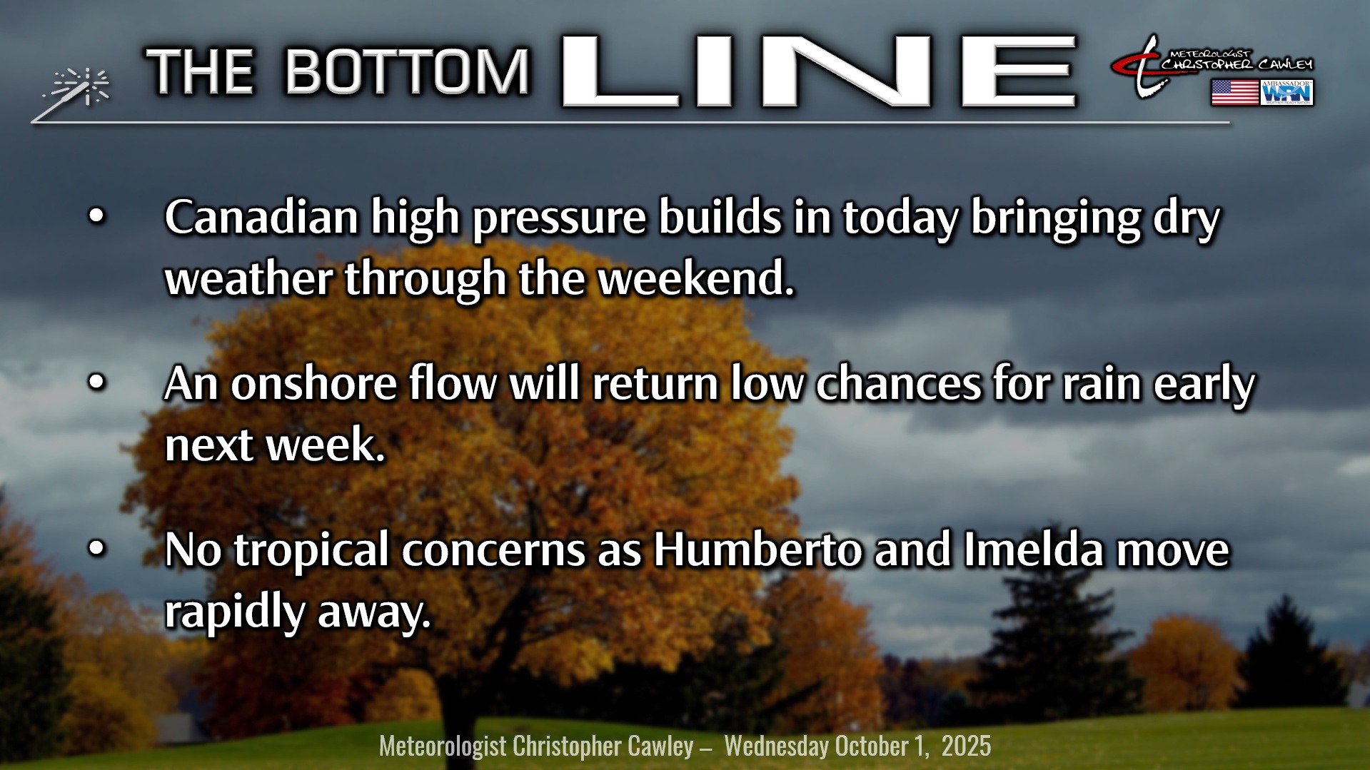 CCN Weather Update for Wednesday October 1, 2025. Happy First of October!