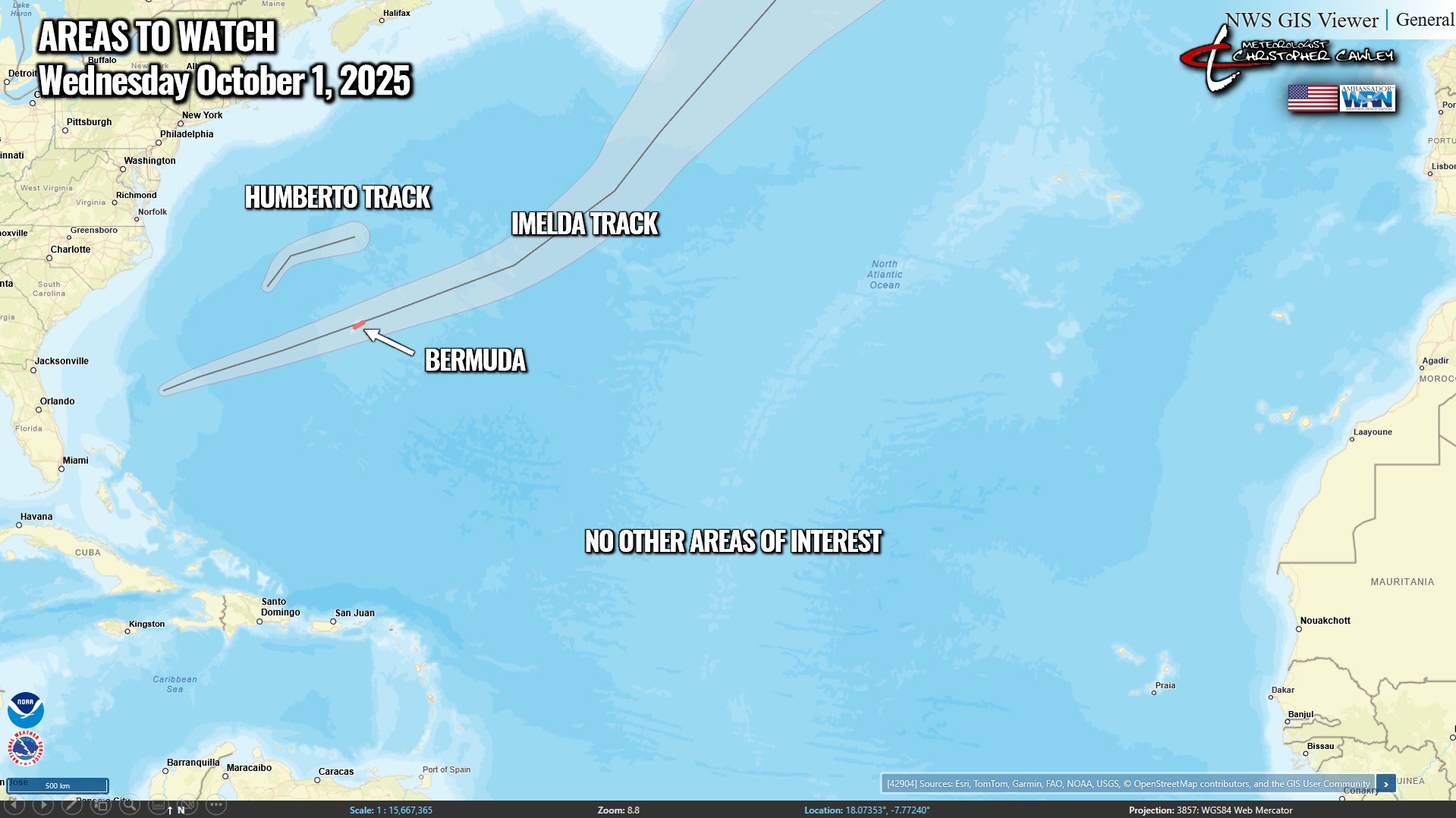 TROPICS: Poor Bermuda is going to take a direct strike from Hurricane Imelda… and Humberto is fading into just a remnant low. Otherwise there are no systems being actively monitored by the National Hurricane Center.