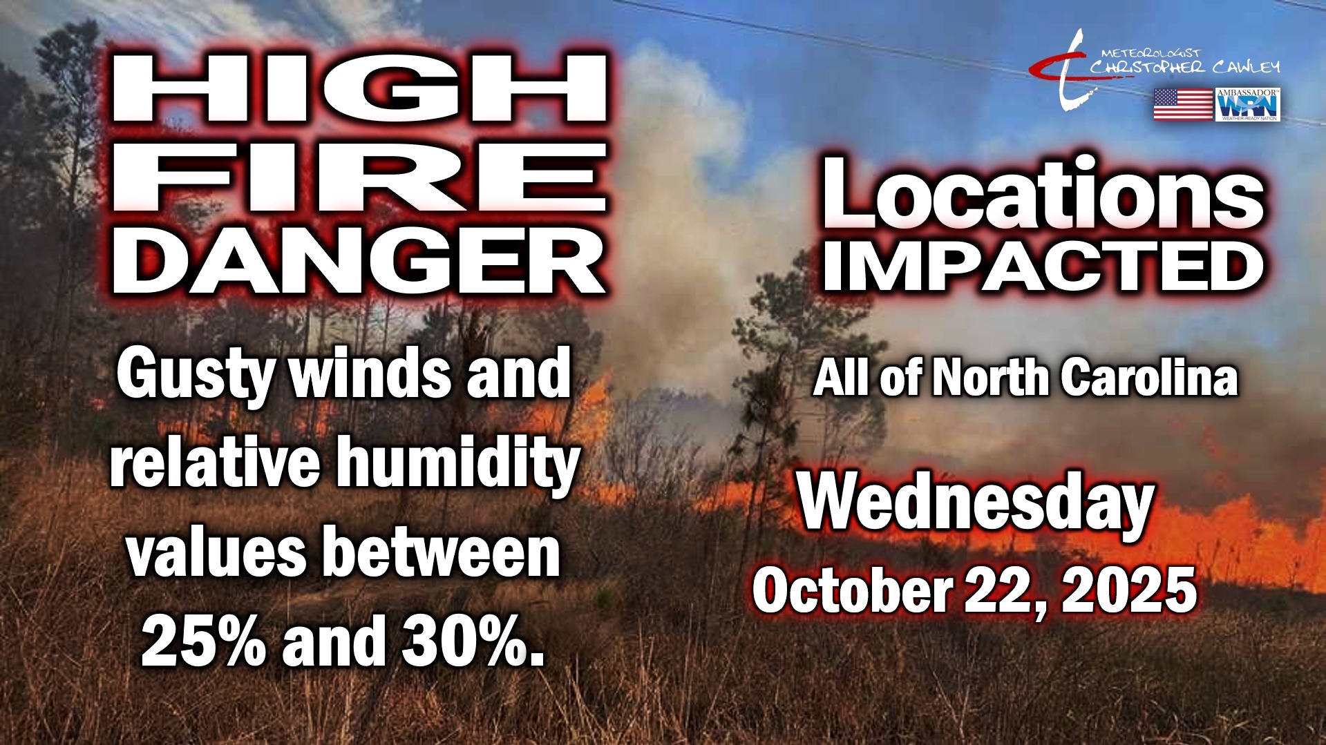 We do have a high fire danger for today, given low humidity and gusty westerly breezes.