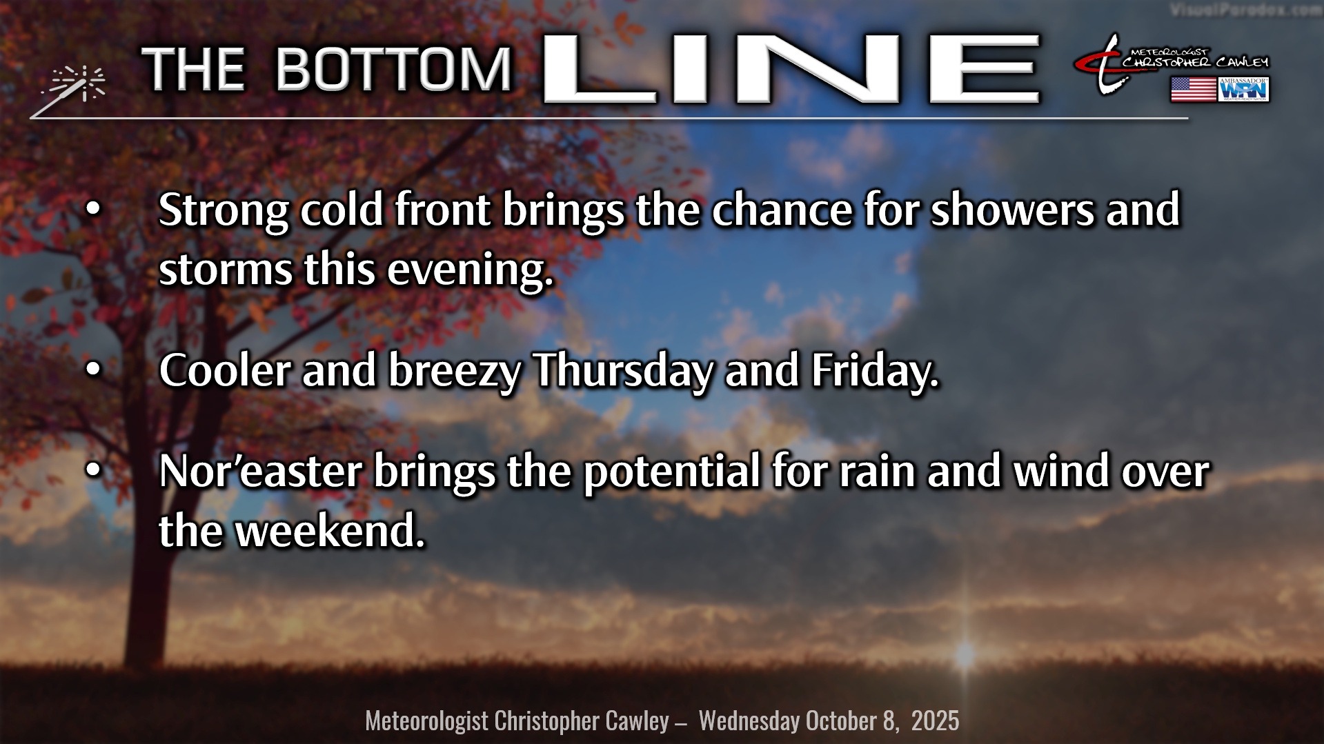 It will turn much cooler during the overnight tonight… temps at the bus stop tomorrow morning will likely be in the upper 50s, with a gusty northeast wind.