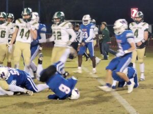 Whiteville got on the scoreboard first early in the second quarter when Sabeyon Shipman scored from four yards out to put Whiteville ahead with 10:56 left in the first quarter. Price Wheatley kicked the extra point to give the Pack a 7-0 advantage. Whiteville’s excitement quickly went away Nygel Morgan returned the kickoff 85 yards. Aaron Acensio kicked the PAT to tie the score 7-7.