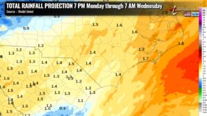 Whiteville experienced a very dry month of November, with only a shade over 0.6″ rain being measured in the uptown area. We’ll eclipse that, likely twice over, Monday night through Tuesday.