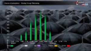There is a threat for thunderstorms Tuesday morning as well. The latest National Weather Service “Hazardous Weather Outlook” points to our area having a “risk for strong thunderstorms Tuesday morning through early Tuesday afternoon. The main hazard [is] wind gusts in excess of 45 mph.”