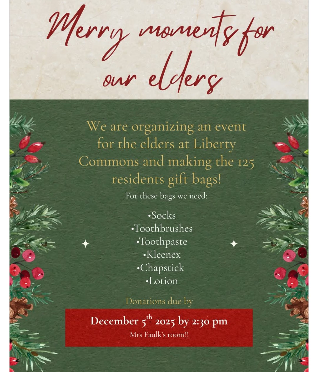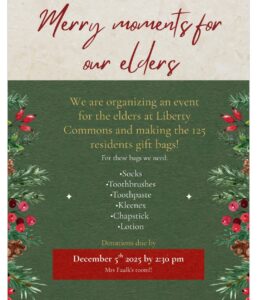 Columbus Career and College Academy will be doing their community service project for the folks at Liberty Commons in Whiteville this month. All donations must be turned in by 5 p.m. on Dec. 5.