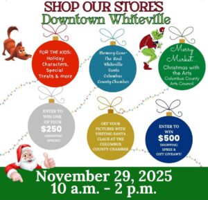 The Merry Market will also be set up the same day at the Columbus County Arts Council, and special characters will be hanging out throughout downtown. Be sure to shop local, grab some treats, take some pictures with the kids, and check out all the sales at participating stores.