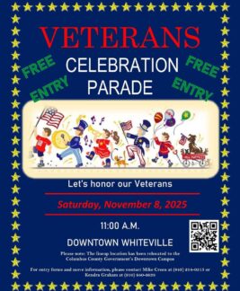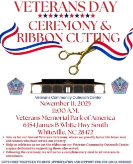 The Veterans Celebration Parade honoring our local military service men and women will be coming through Whiteville on Nov. 8 beginning at 11 a.m. Please note that the lineup for the procession has changed and will now be at the Columbus County Government’s Downtown Campus.