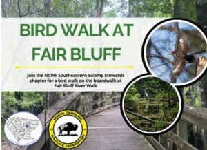 Join the organization as the check out the local bird population. Registration is required, and you can sign up by visiting www.ncwf.org/event/bird-walk-at-fair-bluff-fair-bluff/.