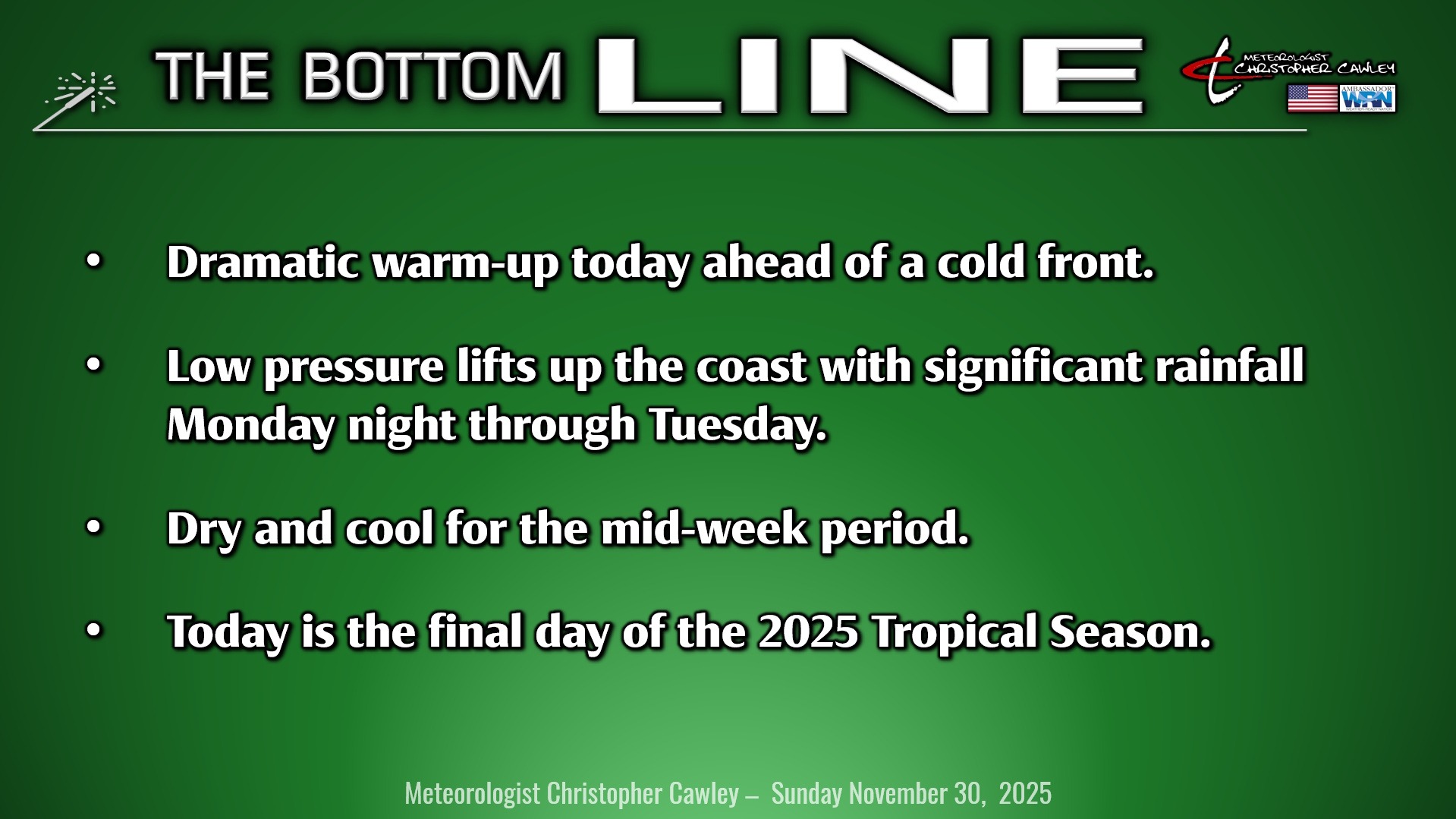 Don’t get to used to it though. The cold front moves through tonight and stalls just offshore on Monday. A weak wedge of high pressure extends down from upstate New York on Monday. This will keep us dry with partly sunny skies and brisk highs in the 50s.