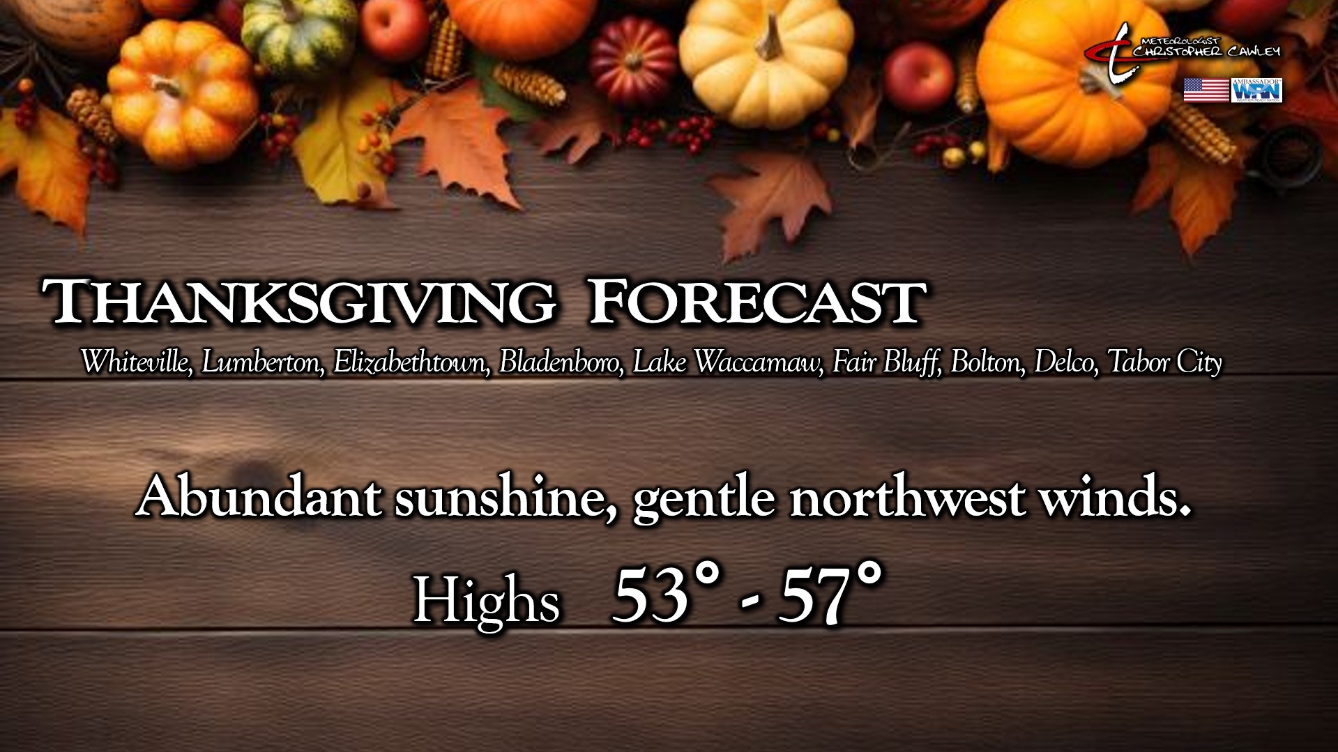 Thanksgiving will be brought to you by bright sunny skies … but our highs will run a good 25 degrees colder. We’ll be lucky to reach the mid 50s despite the full sunshine.