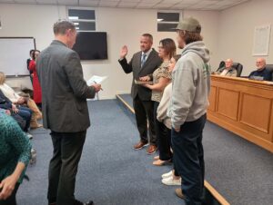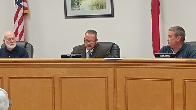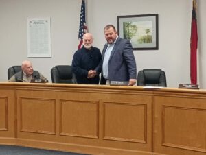 Lake Waccamaw Town Hall had new faces and closed out old business at Tuesday night’s December meeting. Matt Wilson handed over the reins to Mayor Greg Jacobs after he and the other new board members were sworn in by Clerk of Court Jess Hill. Lynn Hinnant and Curtis Andrews were warmly welcomed by commissioners Karl Bracey and Terry Littrell as they took their seats.