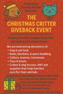 Anonymous recommendations are welcome, and APS is asking folks to just give what you can and share kindness. For more info, you can call the shelter at 910.641.3945 or email them at animal.services@columbussheriff.com.