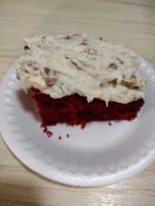 My boys would rather have a slice of red velvet above anything else, but only if it has a slathering of Ms. Ila’s Cream Cheese Frosting.