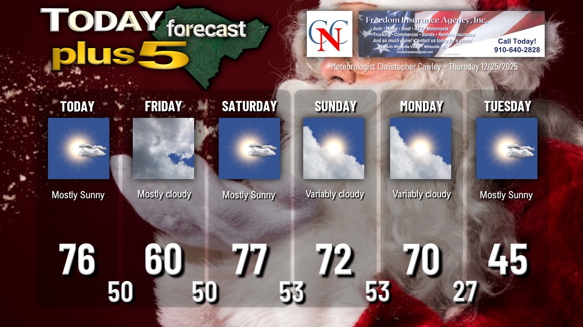 This weather update is sponsored by Freedom Insurance of Whiteville. You can trust Freedom Insurance to give you clear blue skies when it comes to home, car, boat, or whatever insurance you need. Let Freedom provide customized coverage to keep you and your family safe. Contact Freedom today at 910-640-2828!
