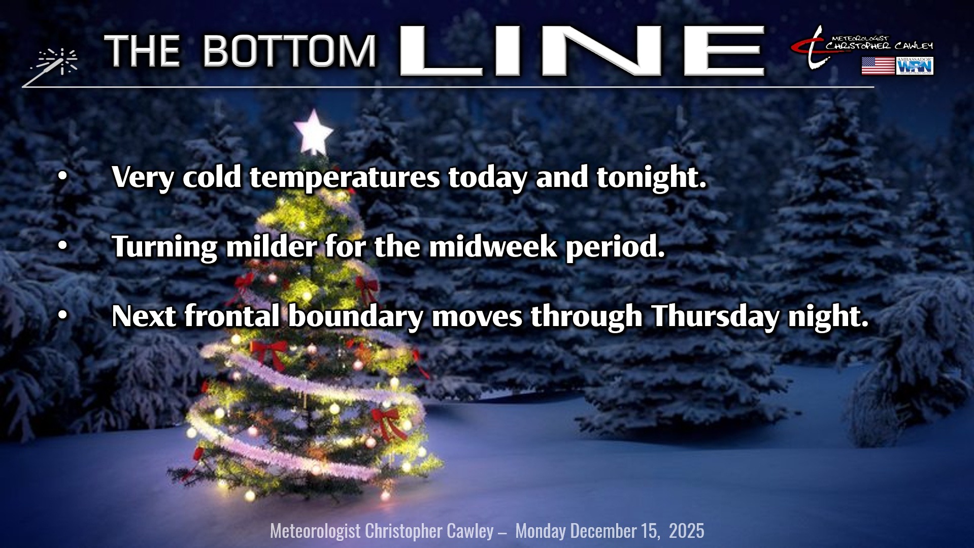 Tonight will be quite cold once again as the high slides over the area. Lows will generally be around 20… although the typically colder spots will drop to between 17 and 20.