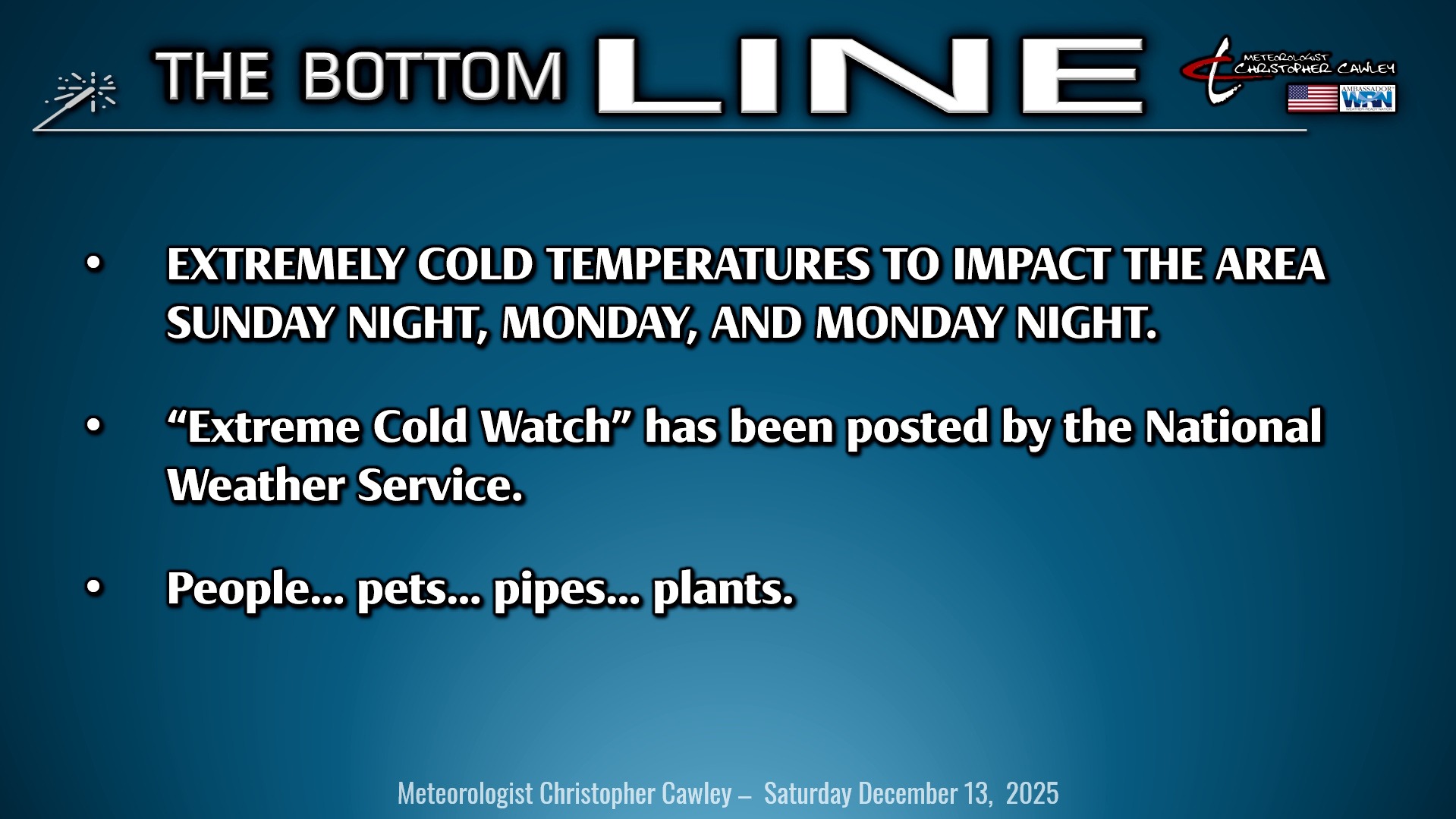 CCN Weather Update for Saturday December 13, 2025.