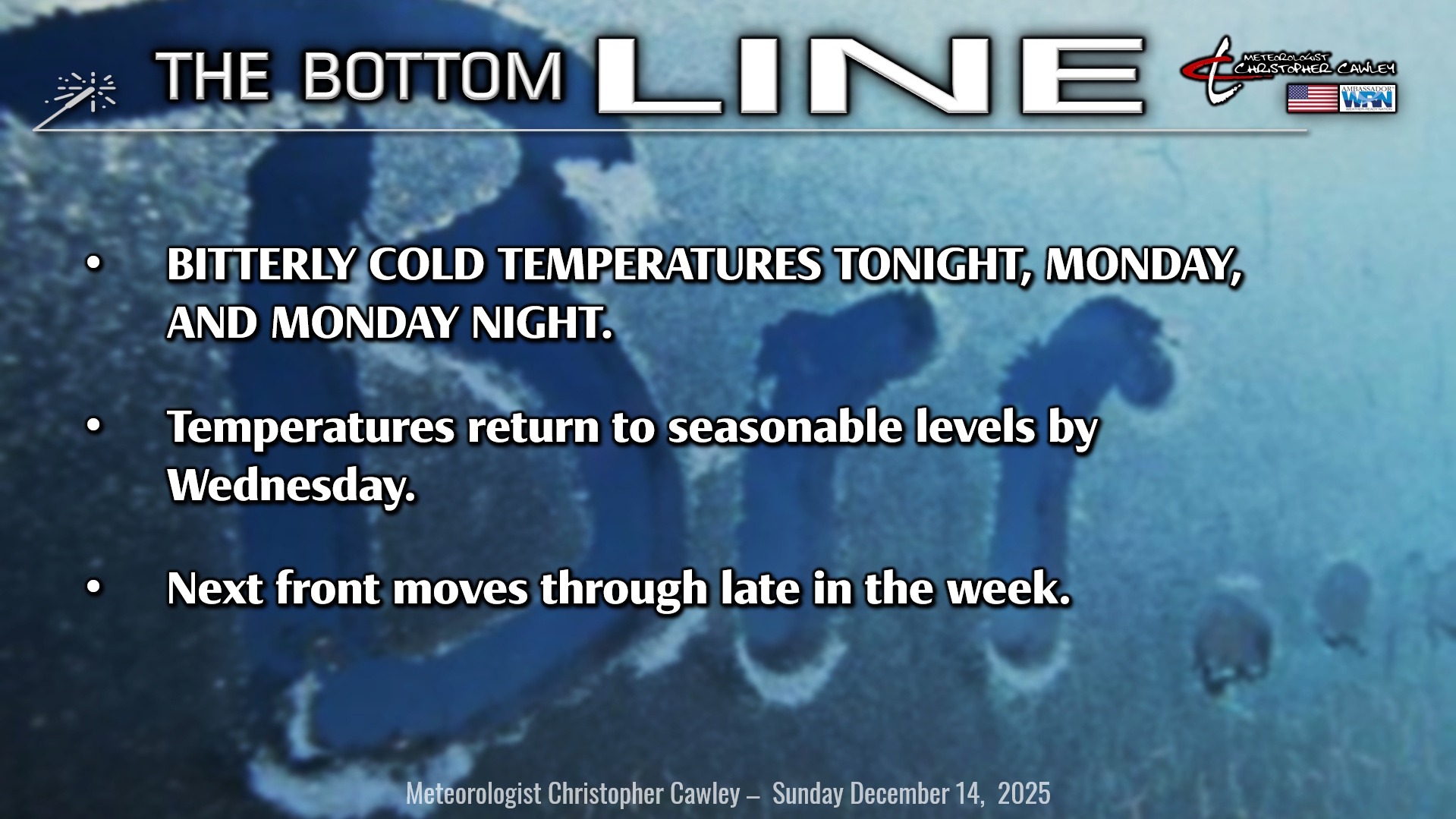 The Arctic high crests over the area during the day Monday. The winds will relax, but even with full sunshine, our highs will only reach the upper 30s. We’ll drop back down to the upper teens to around 20 on Monday night/early Tuesday.