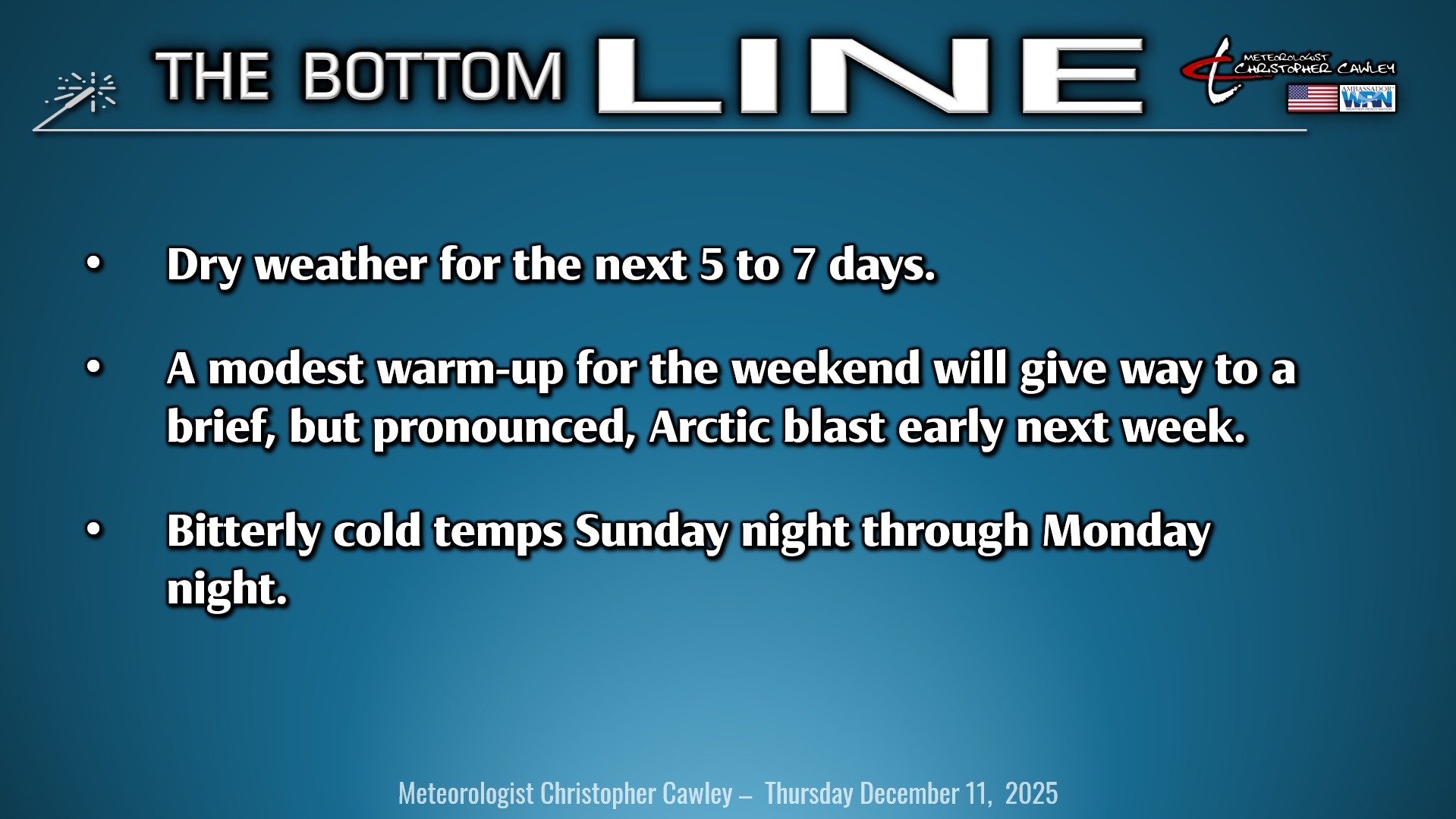 A quiet, benign overall weather pattern will be the rule well into next week, with no precipitation anticipated.