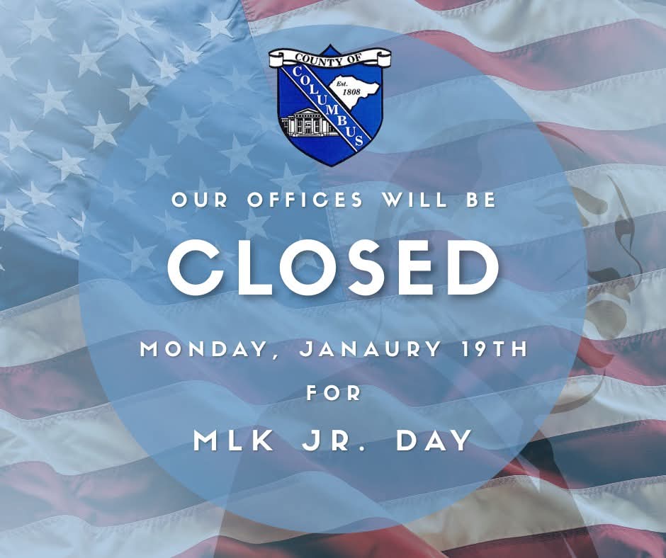 Columbus County Government Offices announced Friday they will be closed for Martin Luther King Jr Day on Monday in a Facebook Post on their Facebook.