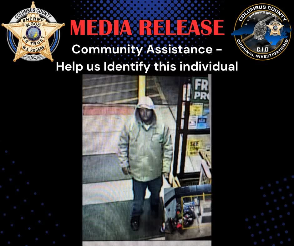 The Columbus County Sheriff’s Office Criminal Investigative Division (C.I.D.) is seeking the public’s help in identifying the individual pictured.