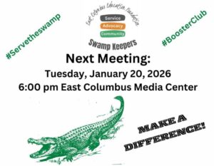 The next meeting of the East Columbus Education Foundation’s Swamp Keepers will be on Jan. 20 at 6 p.m. in the East Columbus Media Center. Come learn about what’s happening, share ideas, and get involved in supporting the school community. ECJSHS can be found at 32 Gator Lane in Lake Waccamaw.