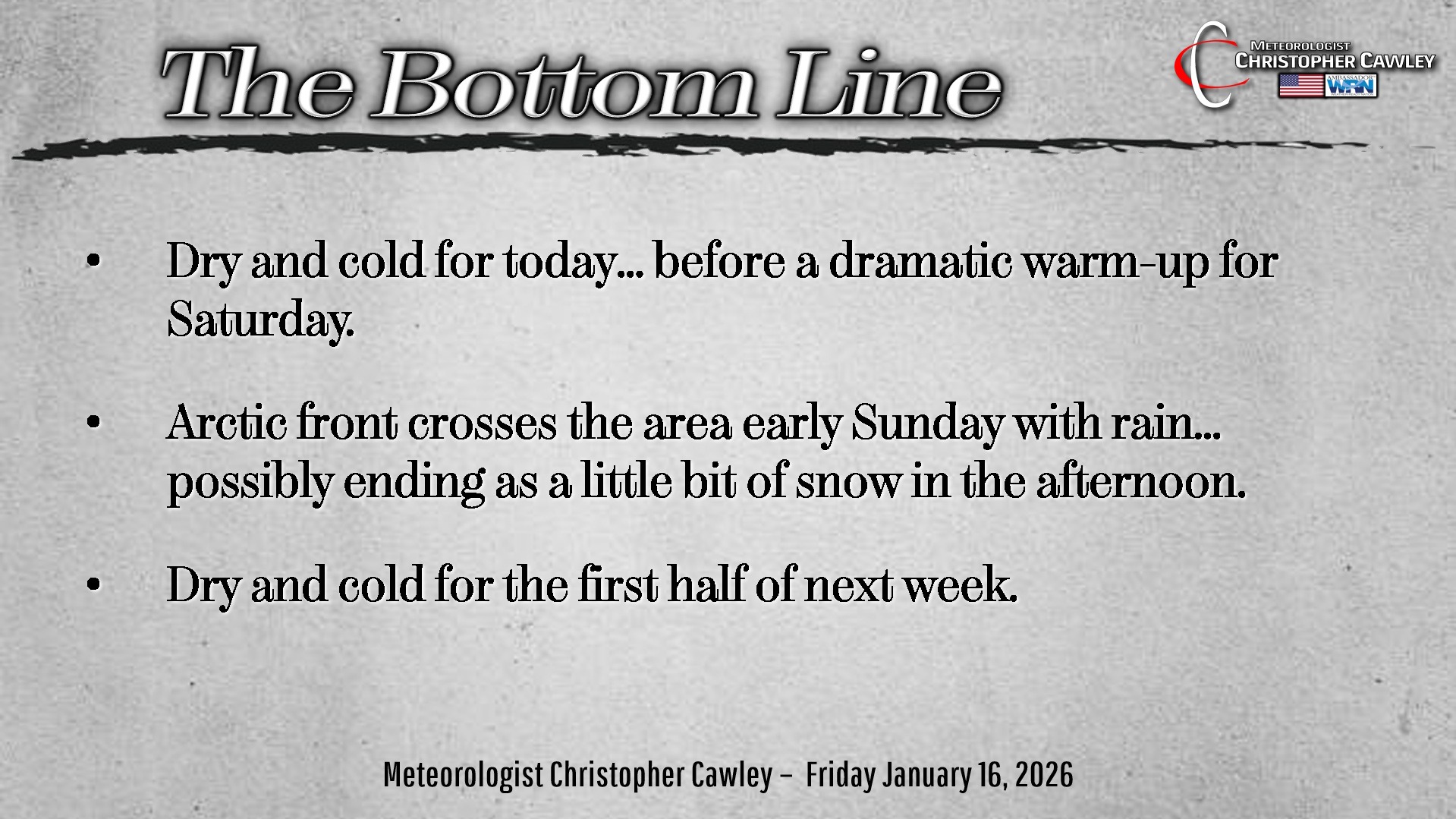 CCN Weather Update for Friday January 16, 2026.