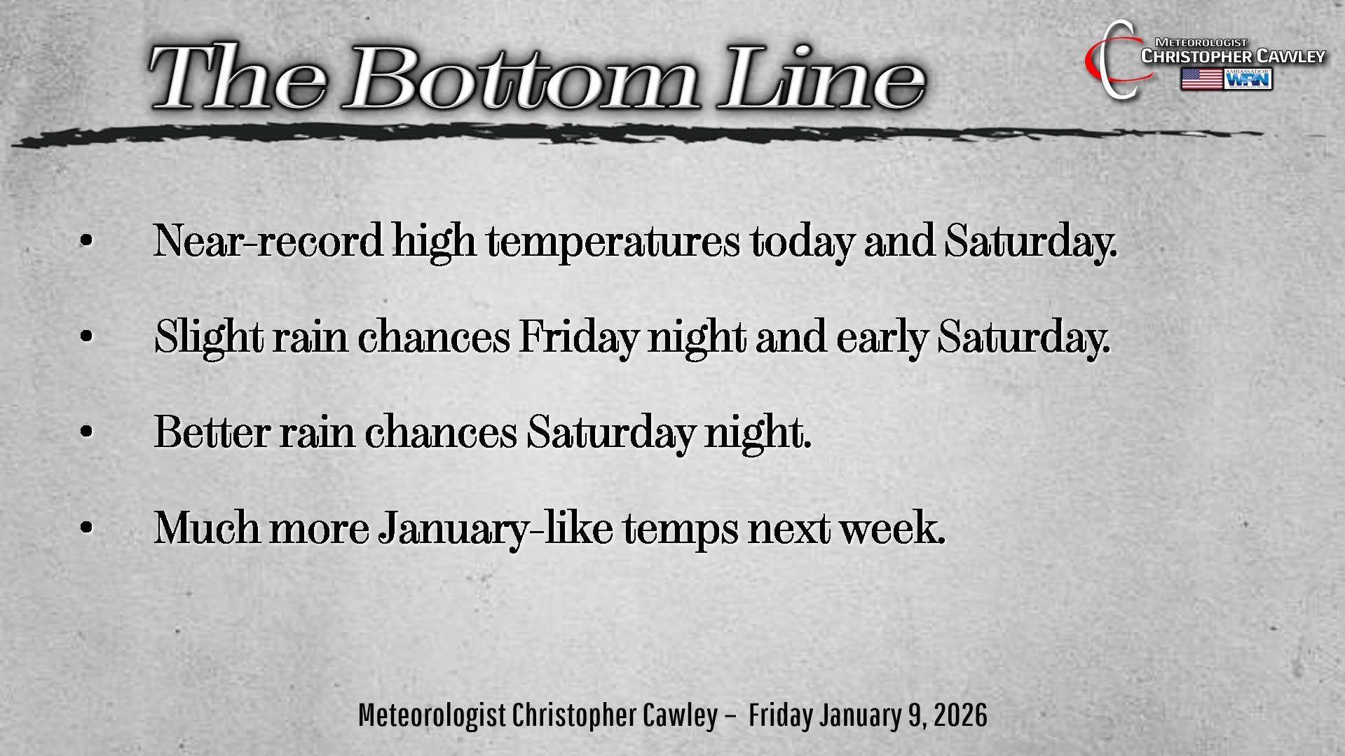 CCN Weather Update for Friday January 9, 2026.