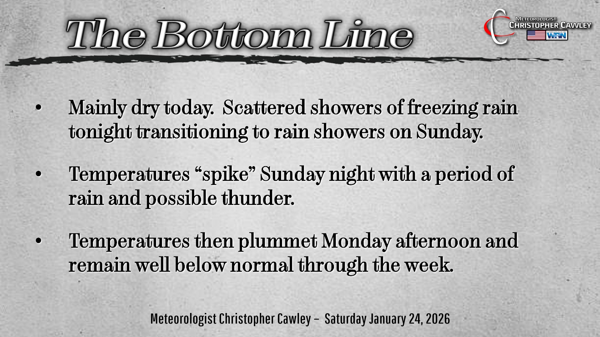 CCN Weather Update for Saturday January 24, 2026.
