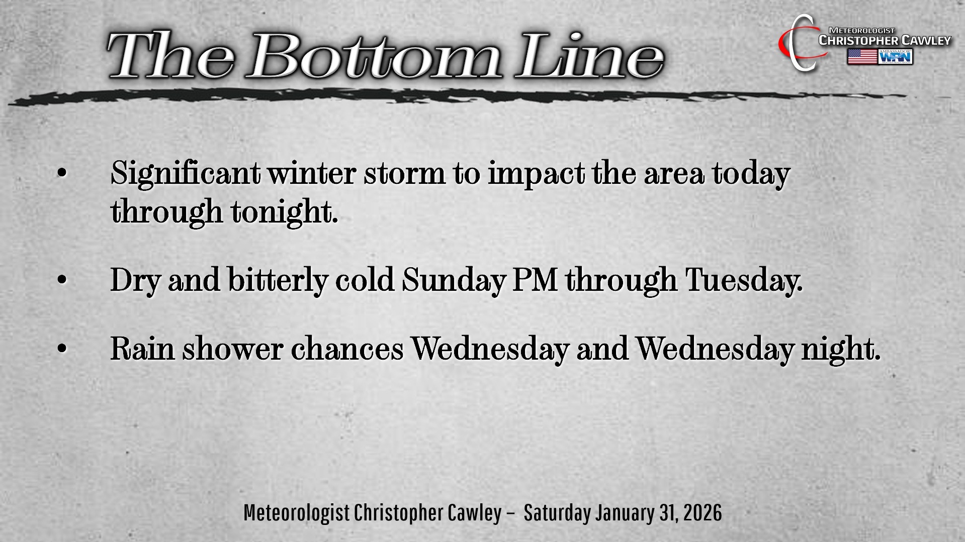 CCN Weather Update for Saturday January 31, 2026.