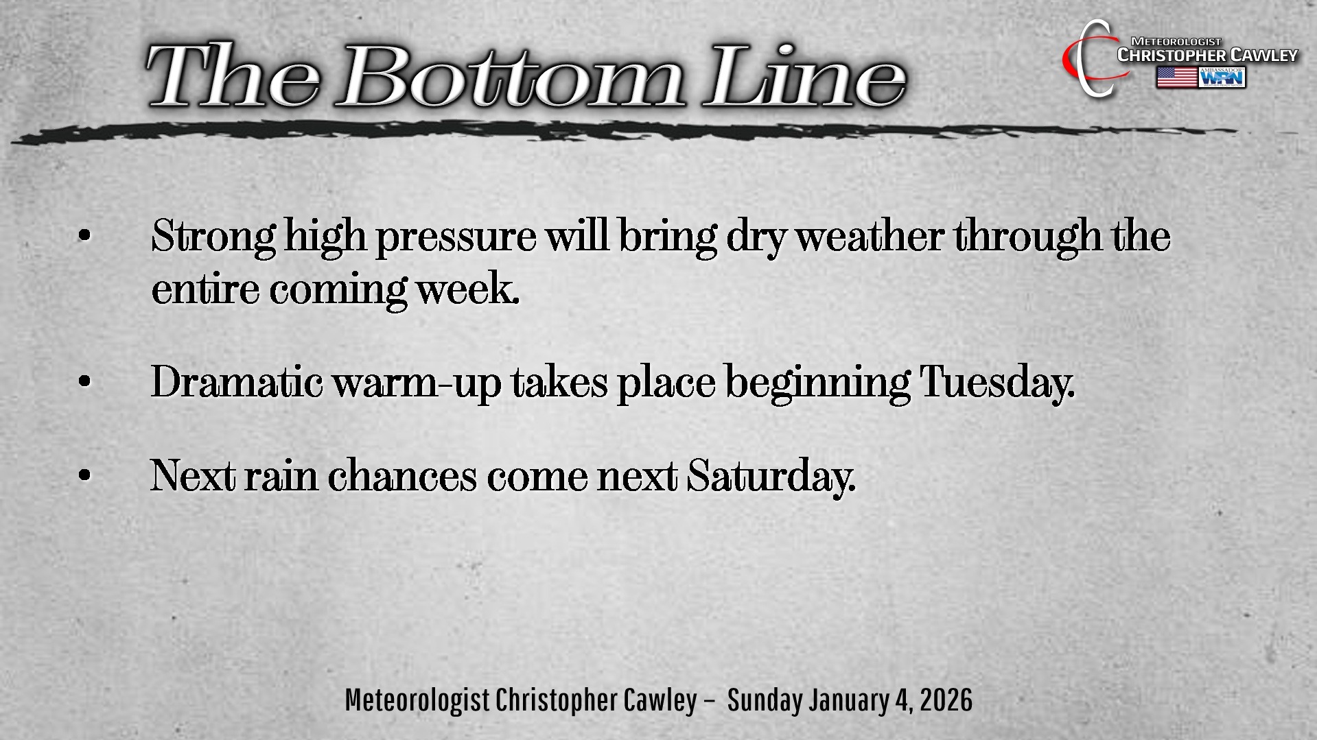 CCN Weather Update for Sunday January 4, 2026.