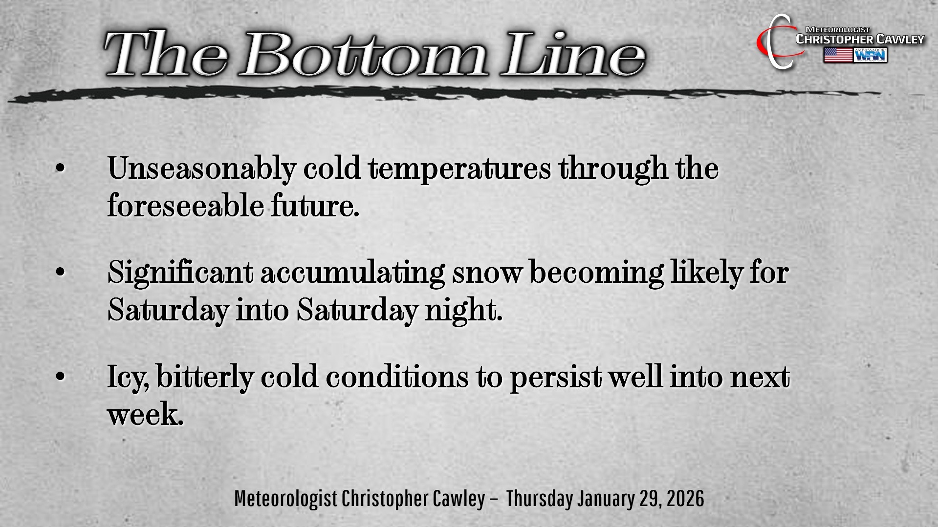 CCN Weather Update for Thursday January 29, 2026.