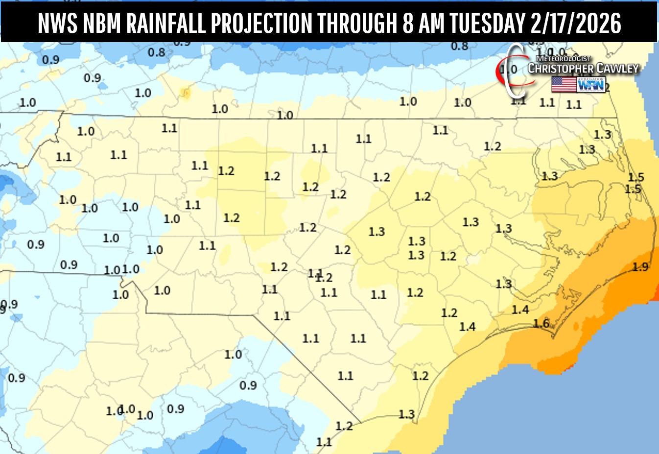 Storm total rainfall of a good solid inch can expected, with local variability in rainfall amounts.