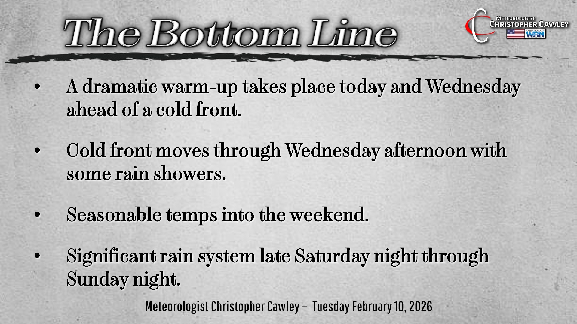 CCN Weather Update for Tuesday February 10, 2026.