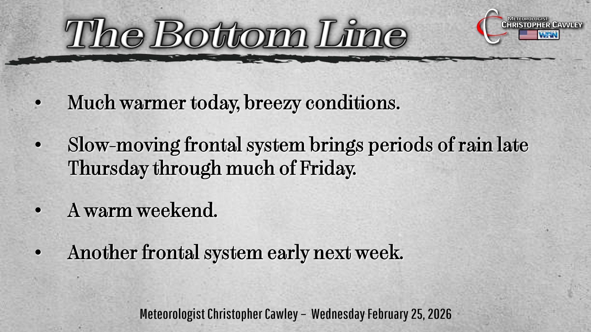 CCN Weather Update for Wednesday February 25, 2026.