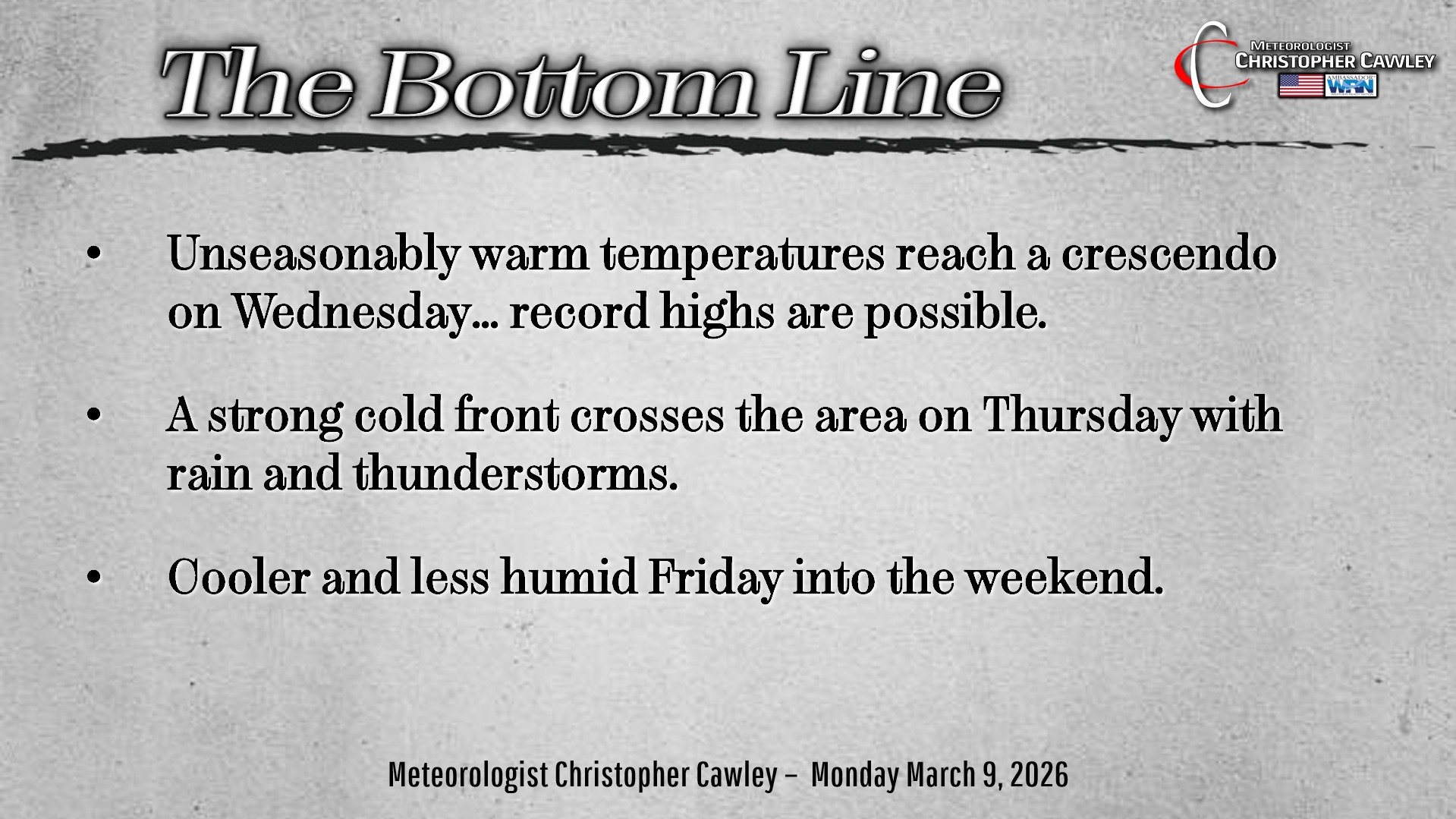 CCN Weather Update for Monday March 9, 2026.