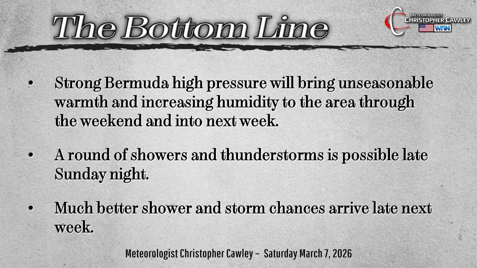CCN Weather Update for Saturday March 7, 2026.