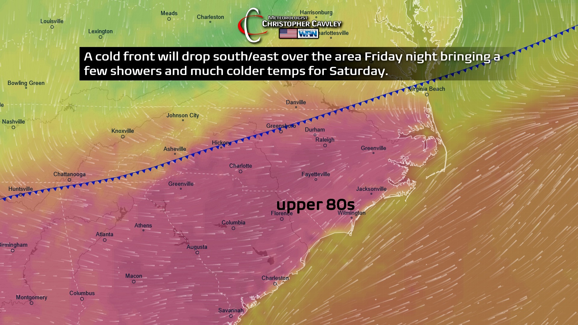 A full-fledged FROST THREAT exists Saturday night into early Sunday, as clear skies and light winds will allow temps to fall deep into the 30s. I’m forecasting 34-38 for most of Columbus County, and temps less than 37 are favorable for frost.