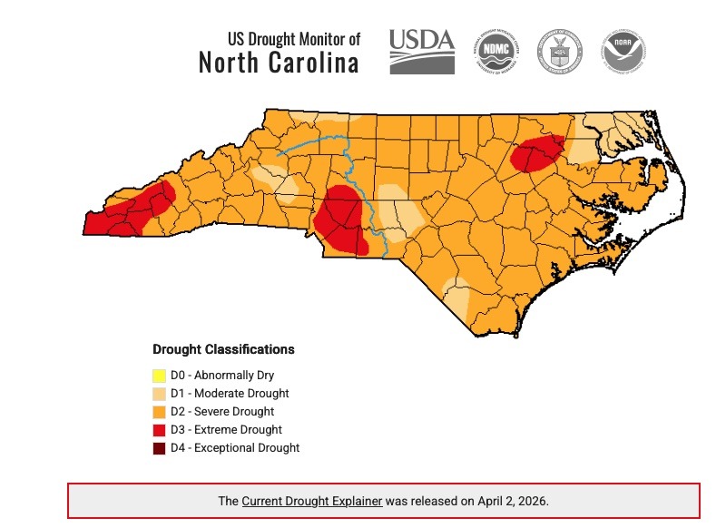 The latest N.C. Drought Monitor was released today (April 2) and there’s no good news.
