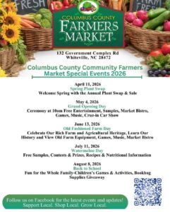 The Columbus County Community Farmers Market will have their Spring Plant Swap on April 11. You can welcome in spring by swapping or buying plants and flowers for your home or garden at the event. While you’re there, be sure to check out an array of vendors, crafters, bakers, and artisans at the market.